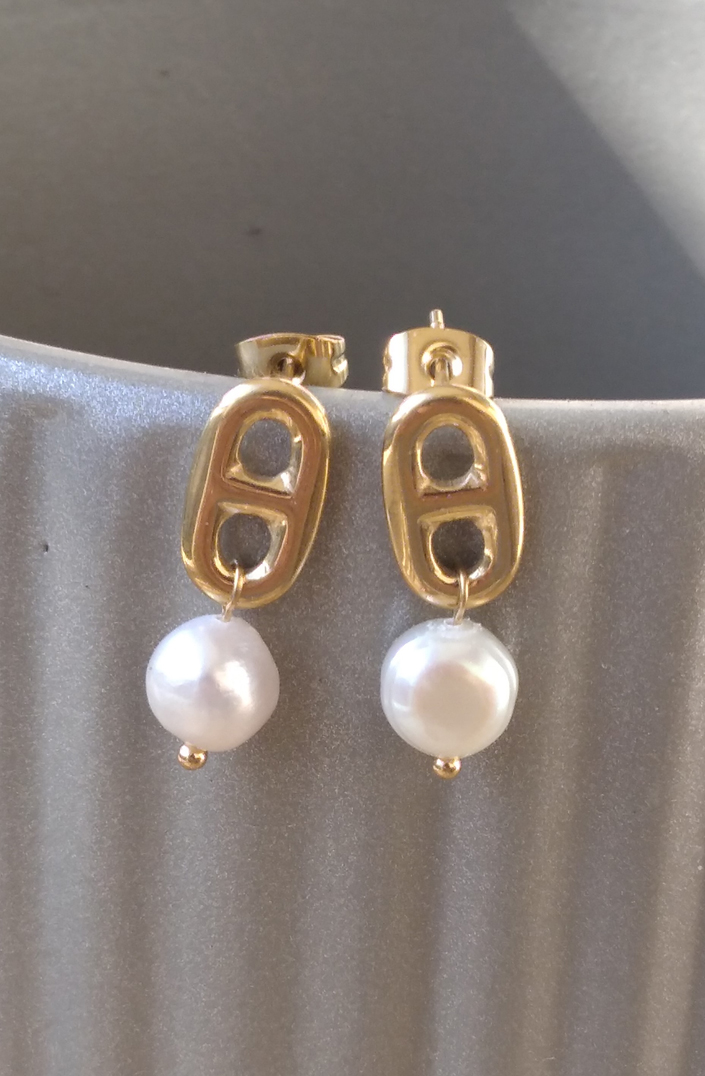 Boucles d’oreilles en acier inoxydable doré et perle d’eau douce